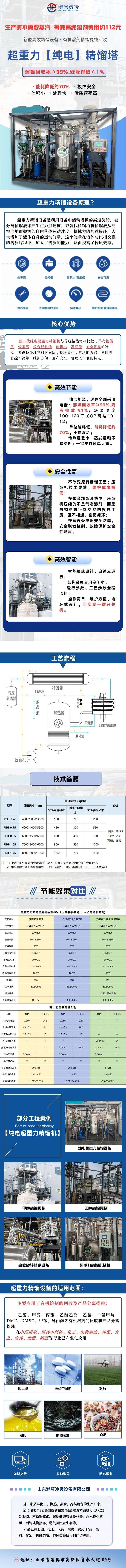 高效節能 清潔能源,過程全部采用電能; 溶媒回收率≥99%,殘液排放≤1%; 熱源溫度100~120℃,COP高達10-12; 單位能耗低,能耗降低約70%,不易液泛; 傳熱溫差小,蒸發溫和不易結垢; 一鍵操作簡單可靠。